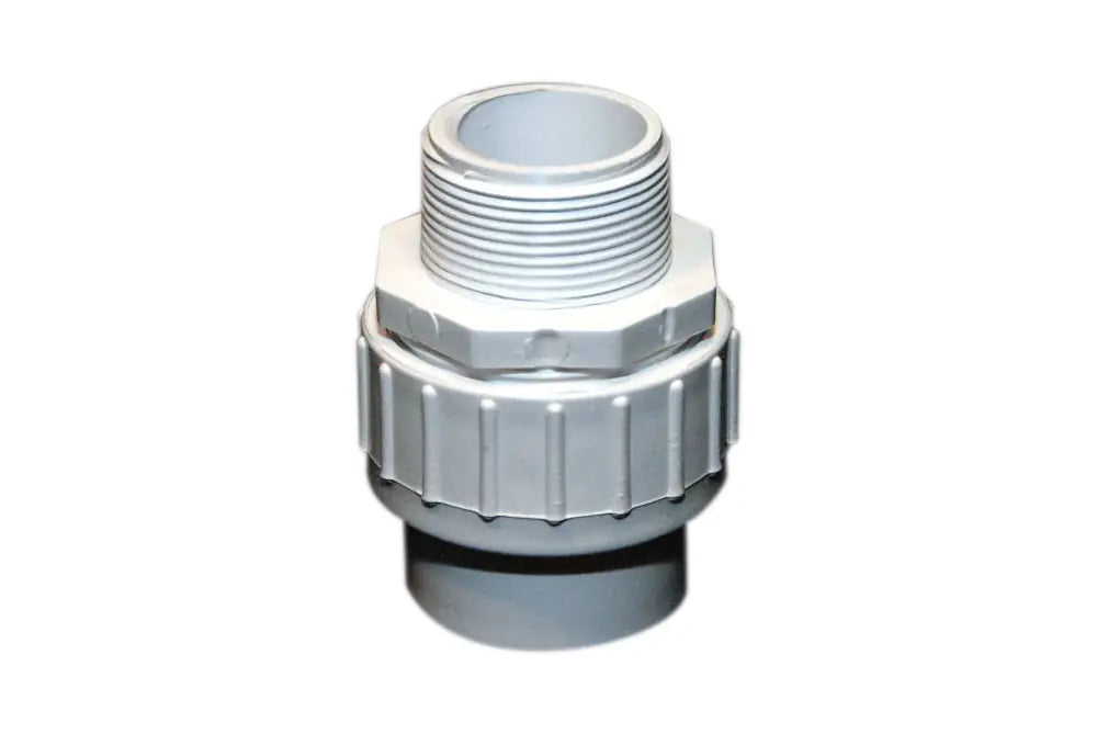 A PVC union is a type of plumbing fitting that is commonly used in koi pond equipment setups. PVC unions typically consist of two parts: a male adapter and a female adapter, each with a PVC socket and a threaded end. The threaded ends can be easily screwed together or unscrewed to connect or disconnect the equipment from the PVC pipe.